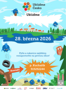 v naší obci proběhne dne 28. března 2026 jarní úklidový den. ,,Ukliďme Česko“ je dobrovolnická úklidová akce, která probíhá na území celé České republiky a zapojují se do ní lidé ze všech koutů naší země. Jejím cílem je uklidit nelegálně vzniklé černé skládky a nepořádek. Ve Vevčicích se dobrovolníci sejdou tuto sobotu v 9:00 hodin před kulturním domem.